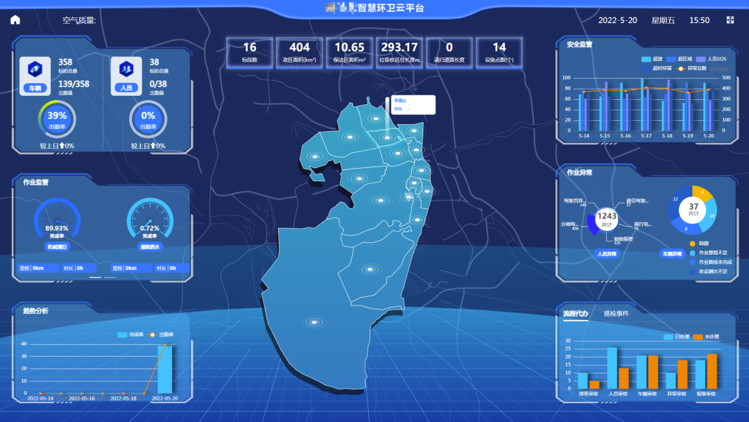 智慧环卫云平台是此次评选方案中的核心部分,由leyu.乐鱼环境自主研发,汇集了全球智慧融合“大云物移智”技术,拥有超20项软件著作权,涵盖了“智慧环卫、智慧城管、智慧分类、智慧餐厨、智慧市政、智慧园林、智慧物业、智慧公厕”等八大软件产品和行业解决方案,能够实现对项目运营所涉及到的“人、车、物、事”构建“全时段、全方位、前后台无缝对接、精准高效” 的运维服务和远程监控管理模式,可以为环卫服务提供市场化、产业化、网联化、数字化运营提供技术方案和解决方案。当前,智云平台已服务全国环卫系统的380余个项目,为全国环卫产业科技变革、新业态打造不断注入新动能。